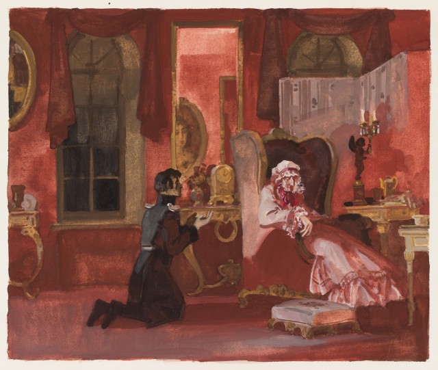 Узнав все, что хотел, Германн пробирается в дом, прячется в кабинете и ждет графиню. Чтобы выведать у нее тайную комбинацию, мужчина использует и угрозы, и мольбы, но графиня отказывается говорить. У Германна последний шанс — он достает пистолет, чтобы напугать старуху, но та, испугавшись, умирает от разрыва сердца.
